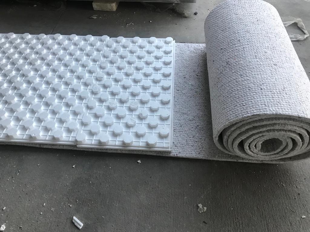 Döşenmiş FeltbiX keçe üstüne şap atılıncaya kadar çalışan hareketi olacak ise, keçe bir kaç noktadan klasik sıva harçları ile yapıştırılmalıdır.